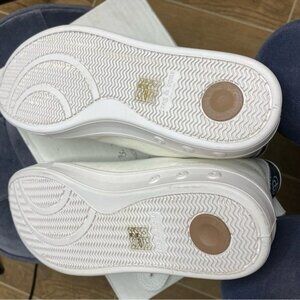 *Textured rubber sole in white featuring perforated accent at side