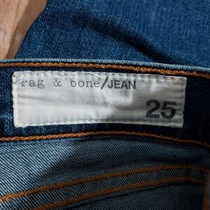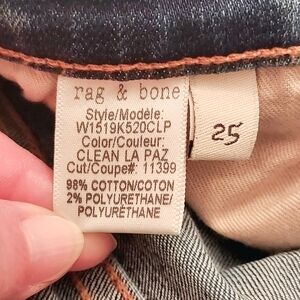 Size 25 Straight Leg jeans from rag & bone. Raw hem. Zipper fly. 98% cotton, 2% polyurethane. Color: Clean La Paz. Made in USA.