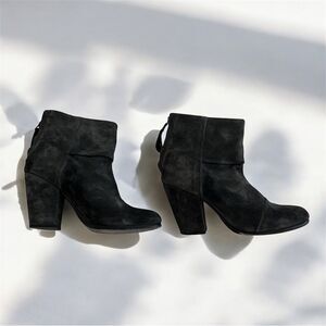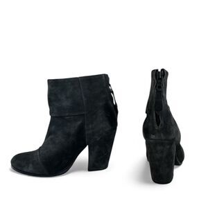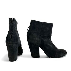 Rag & Bone Suede Granite Newberry Grey Block Heel Zip-Up Ankle Booties 7.5