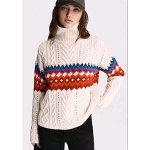 Rag & Bone Sweater Turtleneck WILLOW Fairisle Cream Alpaca Wool Knit Sz Small