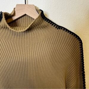 Rag & Bone Tan Ally Ingrid Whipstitch Detail Mock Neck Sweater in Khaki XS