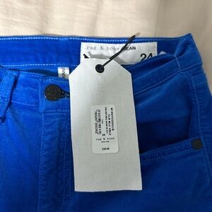 NWT Rag & Bone Bright Blue velvet high rise ankle Jeans