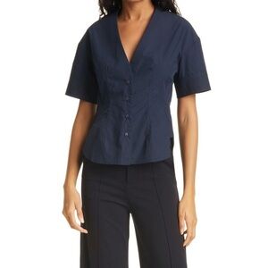 Rag & Bone Victorine Short Sleeve Button Front Shirt Night Blue