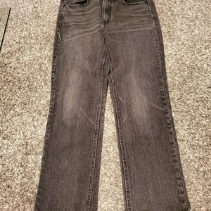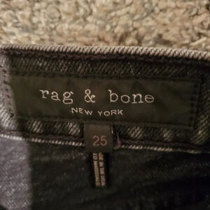 Rag & Bone Vintage Straight jeans. These are in the Black Bunnys wash and a size 25. They measure as follows: waist-27 inches, hips-30 inches, rise-10 inches, and inseam-23 inches.