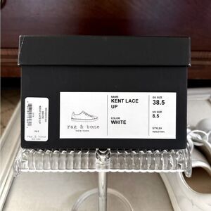 Rag & Bone Kent style white leather Italian Buffalo Leather lace up metal eyelet sneaker NIB Embossed Rag & Bone on the heel. 38.5 (MSRP $375) minor scuff on underside of left tongue. Never worn