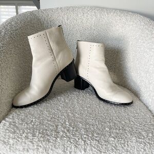 Ivory leather mid-heel ankle boot with silver micro stud detail. Worn a few times for a photoshoot.