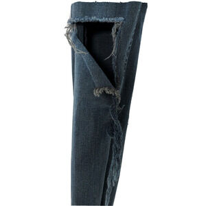 CONDITION: These jeans are distressed with a hole in the knee and a hole at the waist.