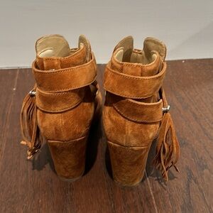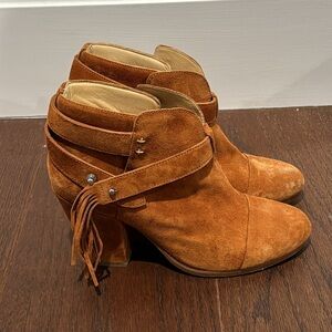 Rag & Bone Womenms Camel Brown Suede Harrow Boots with Fringe Size 37.5/7.5