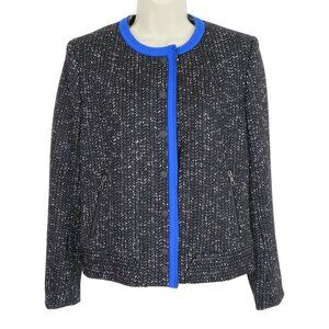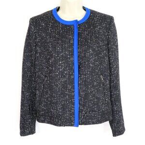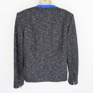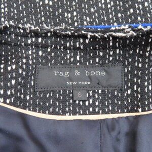Rag & Bone Womens 6 Black Blue Wool Tweed Jacket Accent Snap Closure Zip Pockets