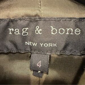 BRAND NEW without tags. Women’s rag & bone army green utility / military style jacket. 4 front pockets, collared, zip & snap close, inside drawstring waist, 85% cotton, 15% rayon. Dry clean only. Size 4. See photos for measurements. MSRP $720