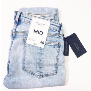 Rag & Bone Womens Med Rise Light Wash Distressed Raw Hem Skinny Jeans Sz 30 New