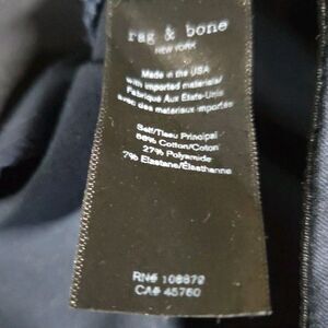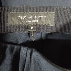 These Rag & Bone women's pants are designed for a sleek and sophisticated look. Made from a high-quality fabric, the navy color and pleated detail offer a polished and professional aesthetic, perfect for business casual settings or more formal events.