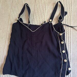 Rag & Bone Women’s Navy Tia Sleeveless Button Trimmed Tank Top Size Medium