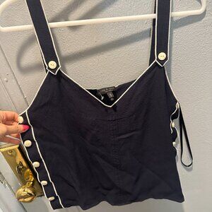 A retro classic, the Tia tank trimmed with contrasting white buttons on the straps and down the sides. Cut from twill jacquard. XXS. New with tag. Easy relaxed fit with adjustable strap