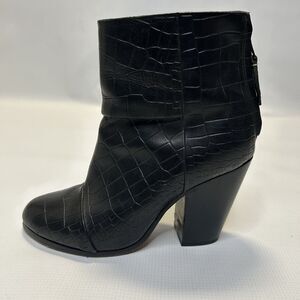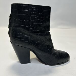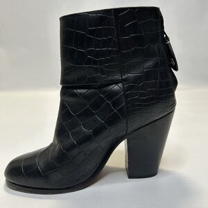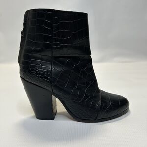 Rag & Bone Womens Newbury Croc Embossed Leather Ankle Booties 5.5 Black Classic