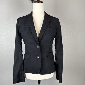 Rag & Bone Womens Pinstripe 2 Button Blazer Size 2 Black Lightweight Wool