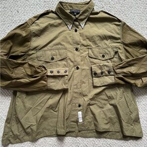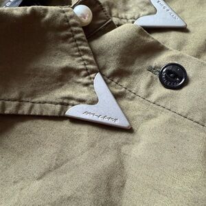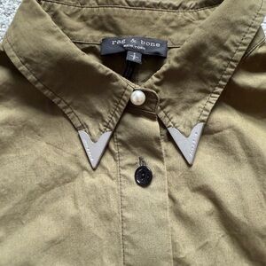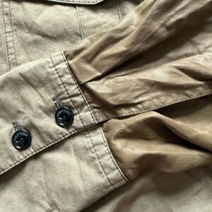 Stylish khaki shirt with button-down design. Ideal for casual wear. Contrast materials for a chic staple.