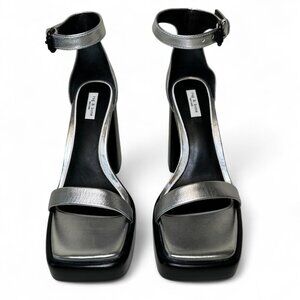 Rag & Bone Women's Silver Leather Matrix Platform Sandal, US 8, EU 38, NIB