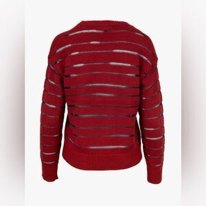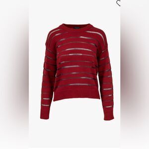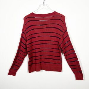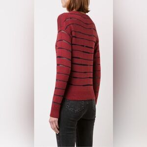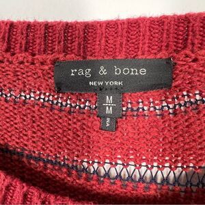 Rag & Bone Women’s Size Medium Red Blue Open Thread Striped Penn Burgundy Crewneck Sweater