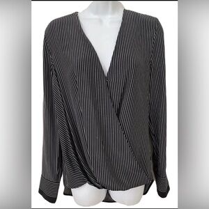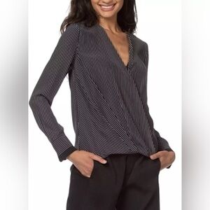 Rag & Bone Victor 100% Silk Black & White Striped Crossover Blouse