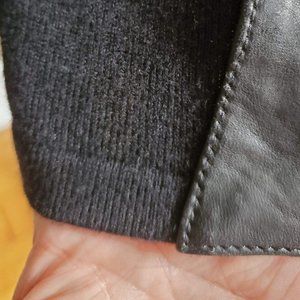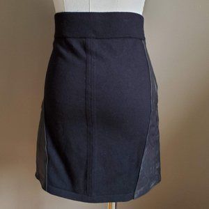 Rag & Bone Wool Knit and Lamb Leather Black Mini Skirt. Stretch wool and lycra knit with full lambs leather panels down both sides. This little skirt wants to go out and have fun! Please see photos for measurements (taken flat).