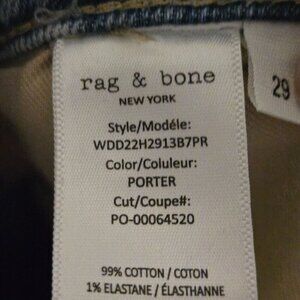 Elevate your style with Rag & Bone Wren High Rise Slim Jeans in Porter. These jeans offer a flattering fit and sophisticated look, perfect for any occasion. Size 29, retailing at $320, they're a must-have for fashion enthusiasts.