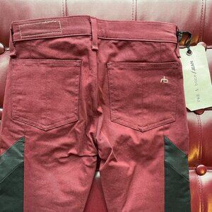 Iconic Rag & Bone for Intermix Grand Prix skinny pant/legging. Burgundy color with black and gray chevron. Sleek, edgy design - classic Rag & Bone streetwear style.