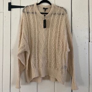 Brand new with tags, this cream colored knit sweater is chic and cozy. Layer it over a shirt or tank and create a beautiful every occasion outfit.