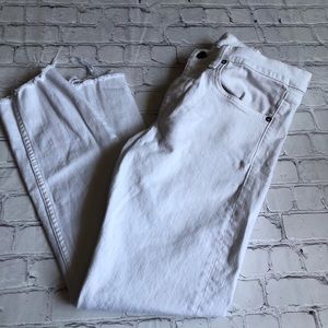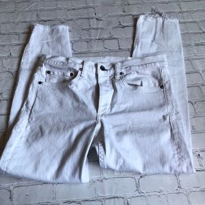 Rag & Bone mid rise skinny ankle raw hem white denim jean size 32 Host Pick