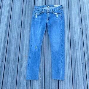 Rag & Bone - slightly distressed skinny blue jeans - mid rise - size 27