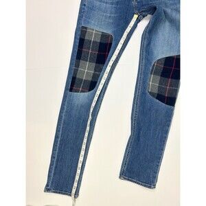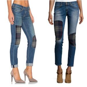 Rag & Bone the Dre Blue Denim & Plaid Flannel Patchwork Jeans Tapered Leg sz 26