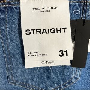 Rag & Bone women's NINA STRAIGHT HIGH-RISE ANKLE CIGARETTE Monty jeans size 31