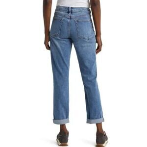 A roomy boyfriend fit gets slimmed down a bit in these faded, whiskered and distressed jeans you'll reach for on the regular. Zip fly and button closure. Five-pocket styling. Straight leg.