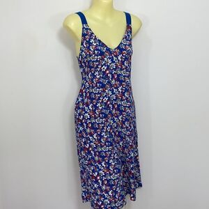 FROM RAG & BONE HERE IS THEIR ADORABLE PULLOVER DRESS CALLED “ESTELLE”. IT IS 100% VISCOSE AND SO COMFY. THIS DRESS IS A LOOSE FITTING SHIFT. IT IS SLEEVELESS AND FEATURES BLUE SHOULDER STRAPS AND A V NECK AND BACK. THE PATTERN IS FABULOUS! IT IS A GARDEN OF RED, VIOLET AND WHITE DAISIES OVER A TRUE BLUE BACKGROUND. MIDI LENGTH. WONDERFUL FOR SUMMER OR CAN BE LAYERED WITH A TEE TOP, FOR WINTER AS SHOWN IN LAST PHOTO BUT THE TOP IS NOT INCLUDED.HIDDEN SIDE POCKETS! EXCELLENT CONDITION! NWOT~ IT IS OVERSIZED SO PLEASE NOTE THE MEASUREMENTS.~ SZ XS/TP