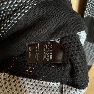 Rag & Bone/Jean Open Weave Long Sleeve Striped Crewneck Sweater Black/White XS