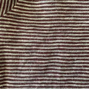 Rag & Bone/Jean Stripe Crewneck Tee. Features a crew neckline, short sleeve tacked cuffed sleeves, & an exposed stitching/seam running down the center front & back. Very skinny stripe design in burgundy & gray color way. In good preloved condition with minimal normal wear including some very light pilling in places (see pic 5). Size medium. Approximate measurements lying flat: 19” from pit to pit & 24.5” from shoulder to hem. Bundle to maximize shipping!