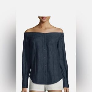 Rag & Bone Kacy Indigo Blue Denim Chambray Off Shoulder Top- XS