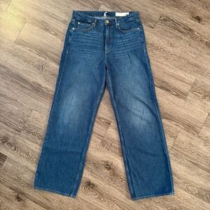 The Logan. A wide leg jean with a relaxed fit. Crafted in rigid denim that fades and creases as your body moves through life. In Annalise, a dark indigo wash with a clean hem