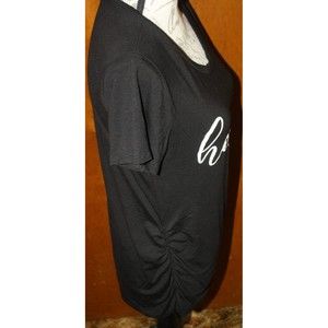 Women's Rag Doll maternity Tee, size small. Black short sleeves with graphics. (See pictures). Gathered sides. New with tags.