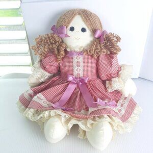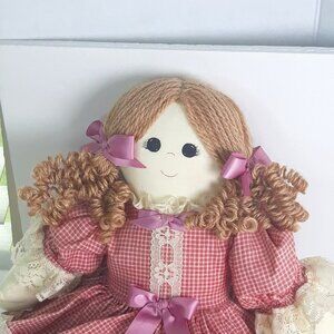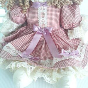 Rag Doll Prairie Style Fabric Gingham Dress w/Petticoat Doll