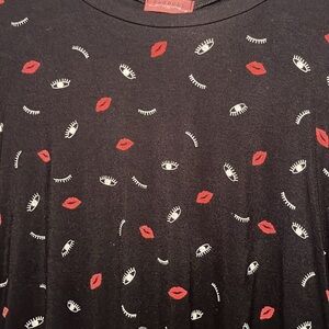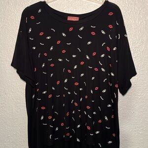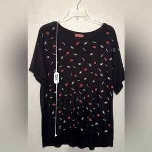 Rag Doll black, multi design, lips and eyes blouse size 1X