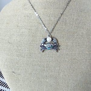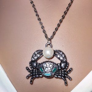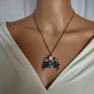 Rag Frog Revival Crab Pendant necklace with pearl 18"