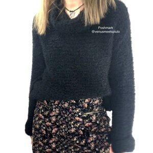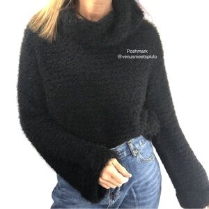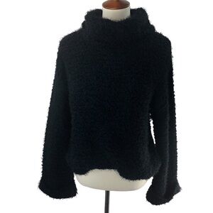 Rag Poet Z Supply Sweater Black Sz S Bell Sleeve Cuffed Eyelash Whimsigoth Boxy