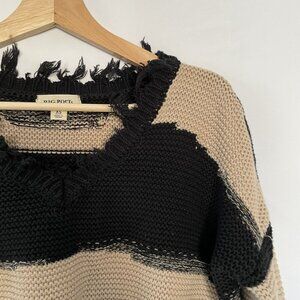 Rag Poets Distressed Black & Beige Sweater XS boho style casual semi cropped