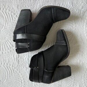Rag Rag & Bone Harrow Black Canvas Leather Strap Ankle Booties Size 37