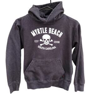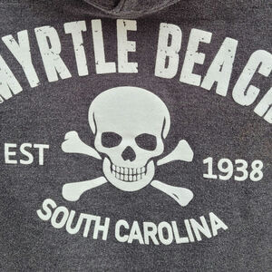 Rag Wear USA Pullover Hoodie Black Myrtle Beach Skull Crossbones Kangaroo sz Lg