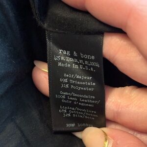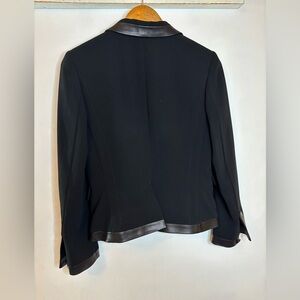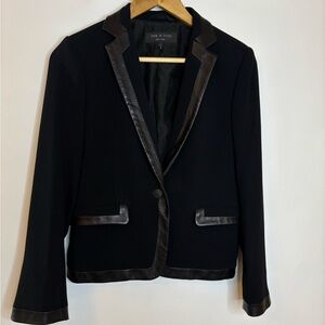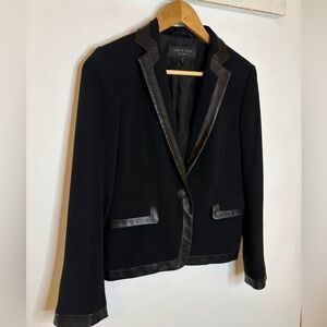 RAF and bone black tuxedo style blazer with lamb leather trim around collar and pockets and hem. Stock photos are not exact. Size 2. Excellent condition.