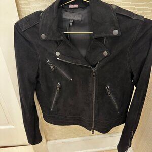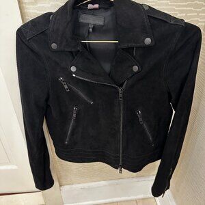 Elevate your wardrobe with the timeless sophistication of Rag & Bone's Motorcycle Jacket. The exquisite Sahara Brown suede is crafted from the finest lamb leather, offering an unparalleled fusion of luxury and edgy style. Accented with striking silver hardware, this jacket is tailored for those who appreciate fine craftsmanship and iconic design. Beautiful zippers on front and edge of the sleeves.