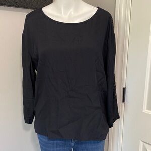 Rag and Bone Lace Sleeve Top Long Sleeve Crewneck Black Shirt Blouse Sz M