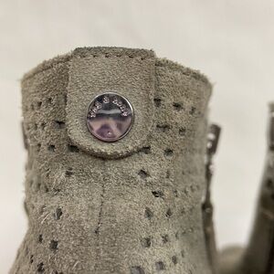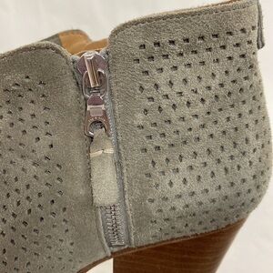 Wardrobe staple boot bootie perforated suede gray grey bootie cement zipper bohemian boho classic Italy leather.